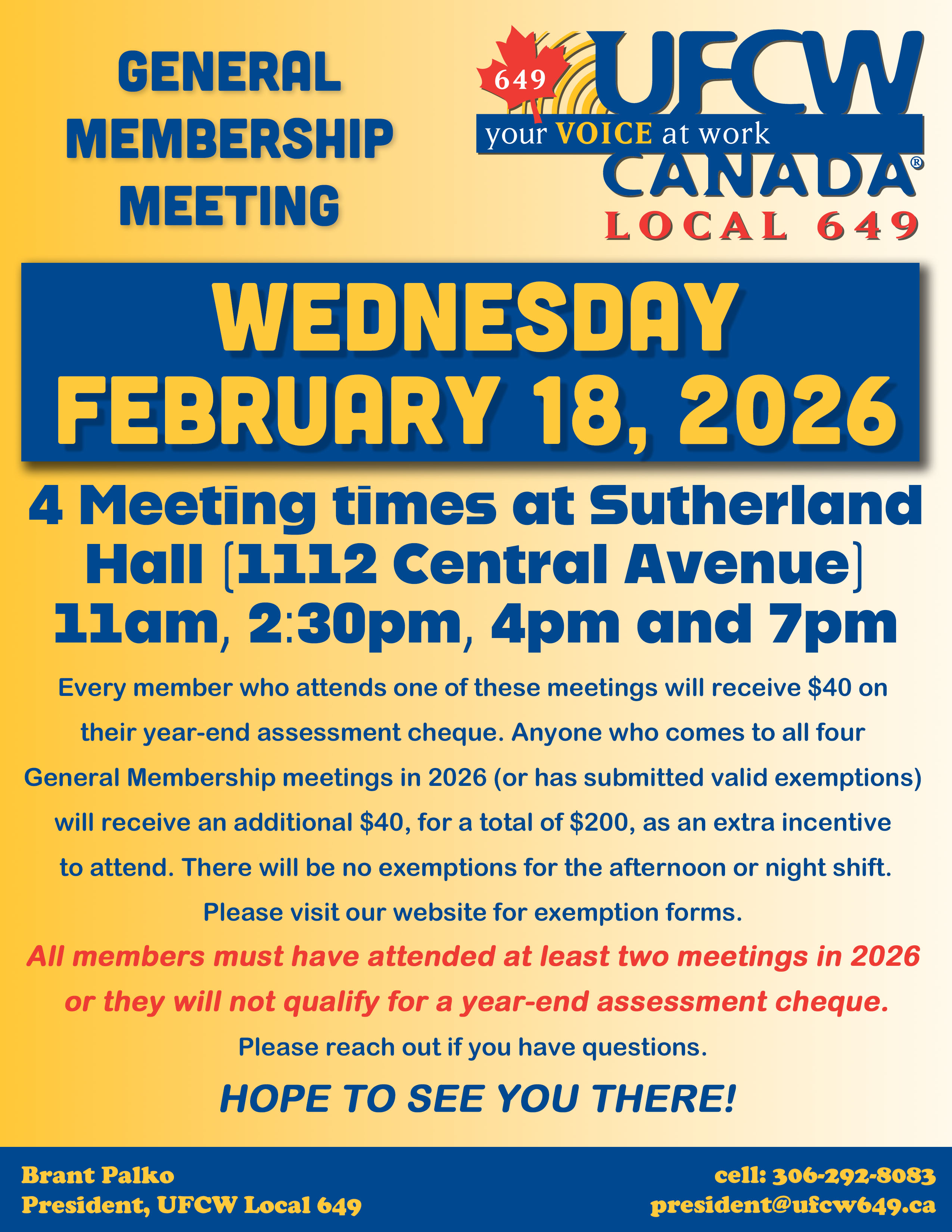 UFCW Canada Local 649 is the union for workers at Federated Co-operatives Limited (FCL). Our local represents members at the FCL food warehouse, feed mill, Saskatoon and Melfort propane plants, and home office buildings. United and strong, UFCW 649 is committed to achieving dignity, equality, and safety in the workplace for all members.